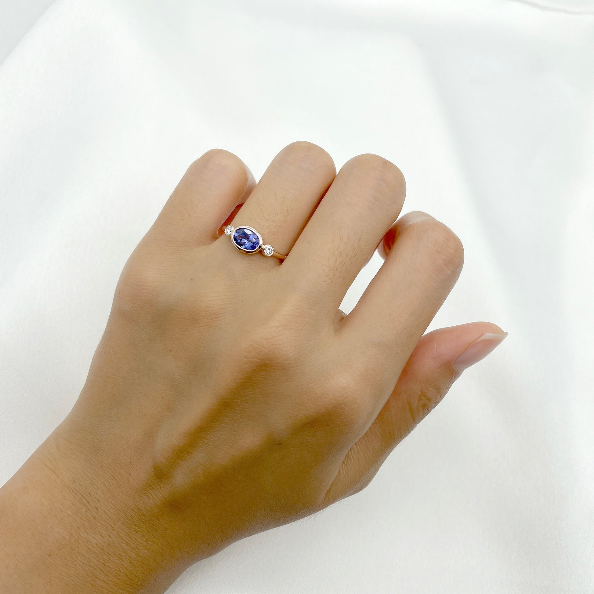 14K OVAL TANZANITE DIAMOND BEZEL RING