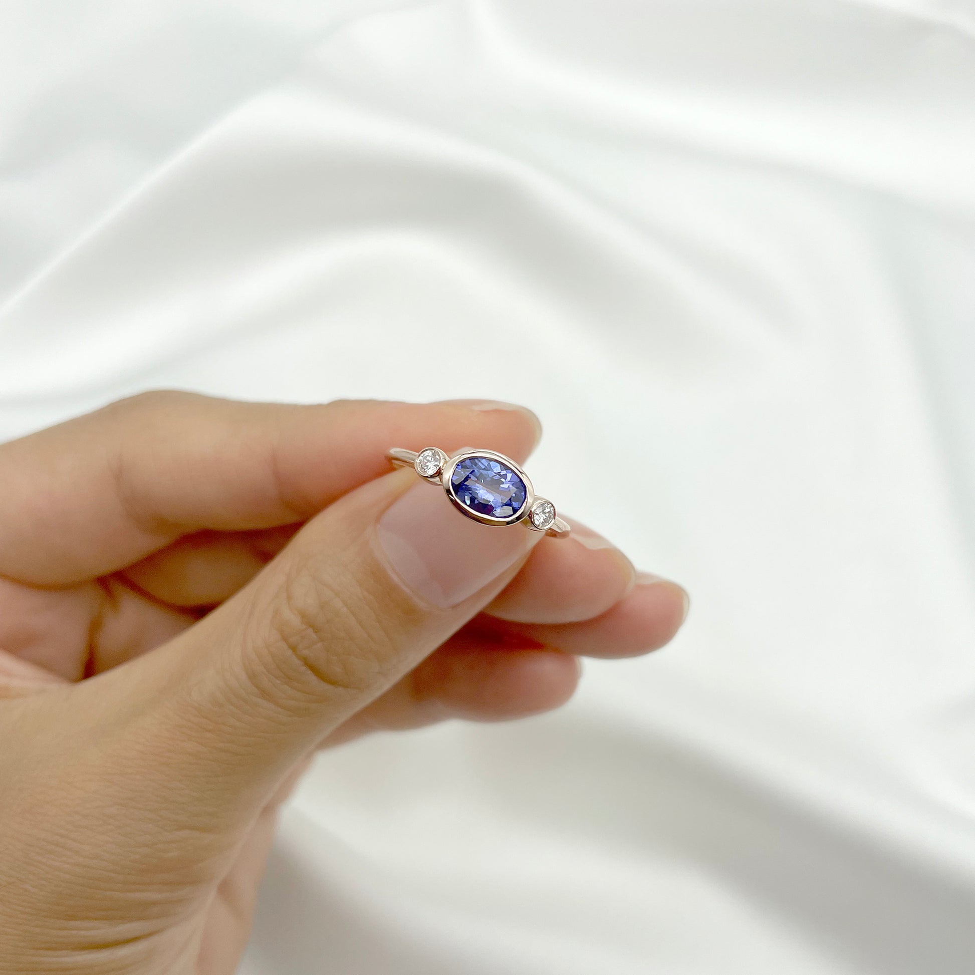 --- Center Stone: 7x5 mm Natural Oval Tanzanite (Approx:0.85 ct)